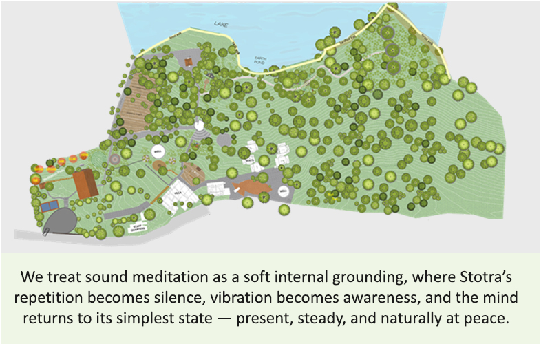 We treat sound meditation as a soft internal grounding, where Stotra’s repetition becomes silence, vibration becomes awareness, and the mind returns to its simplest state — present, steady, and naturally at peace.